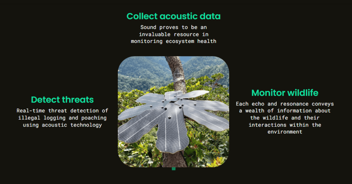 Hidden in Trees: The phones are placed high in the rainforest canopy — hidden from view, but listening all day, every day.