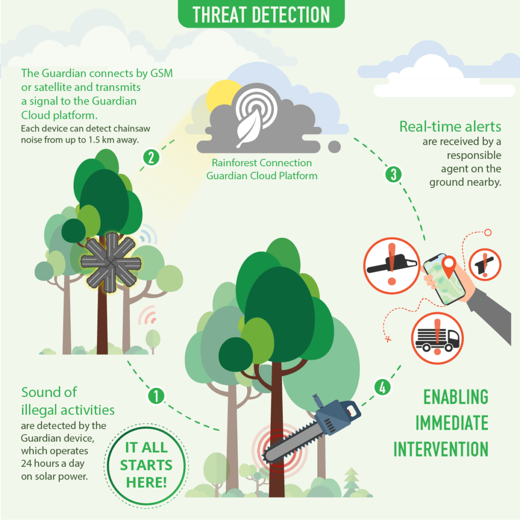 🌍 Big Impact: A full Guardian network can protect up to 300 hectares — that’s about 550 football fields of rainforest!