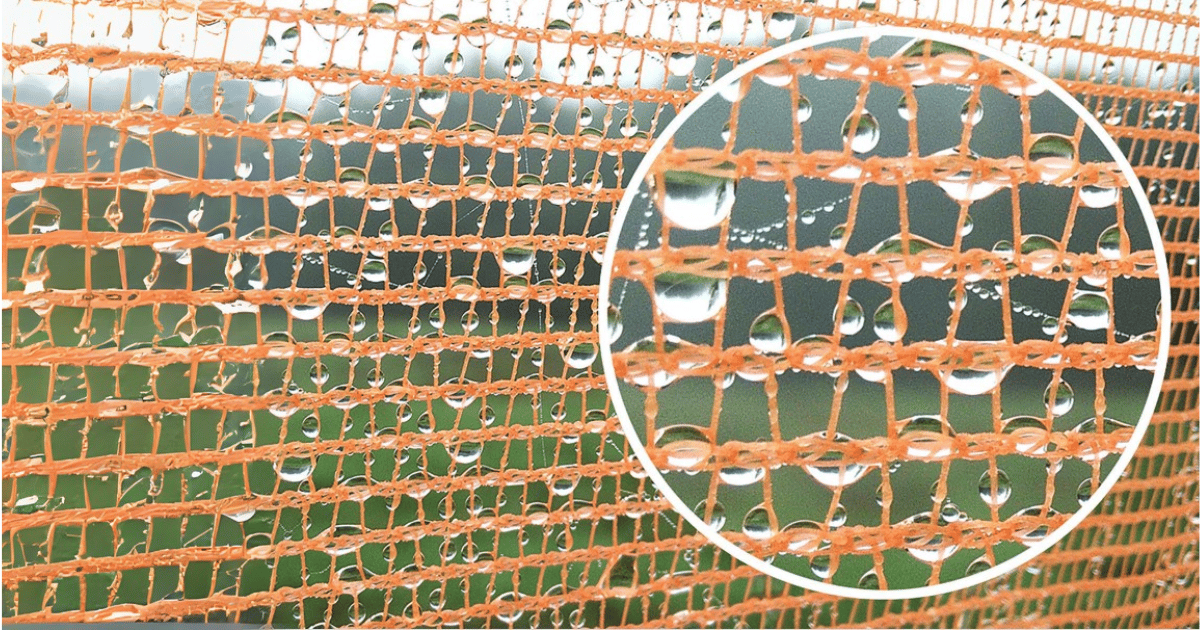 Air always holds some water vapor, even in dry climates. When this moist air touches the cooler surface of the mesh, condensation occursājust like how a cold glass "sweats" on a hot day.