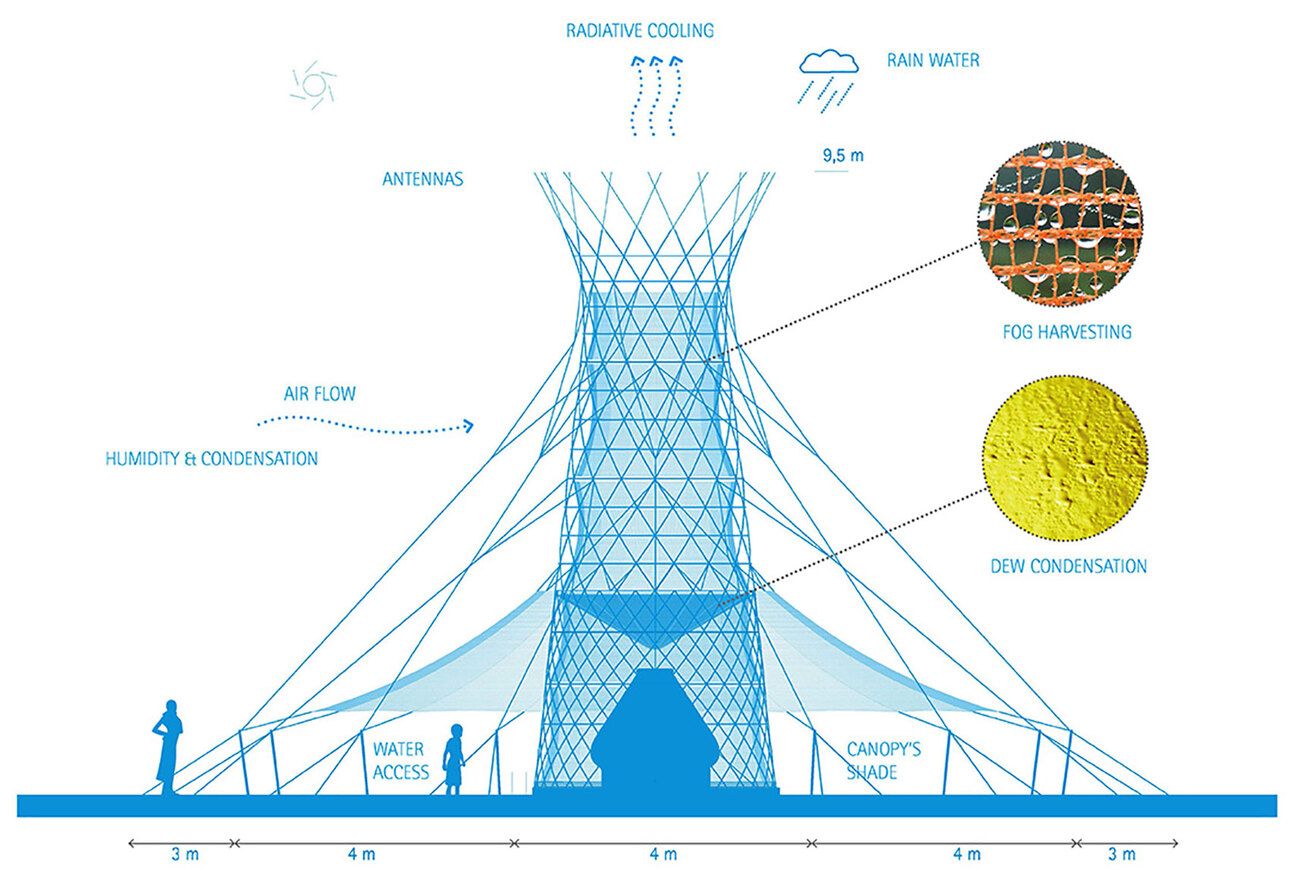 But nature provided more than symbolism. The design of the tower draws inspiration from animals and plants that harvest water in dry places:
